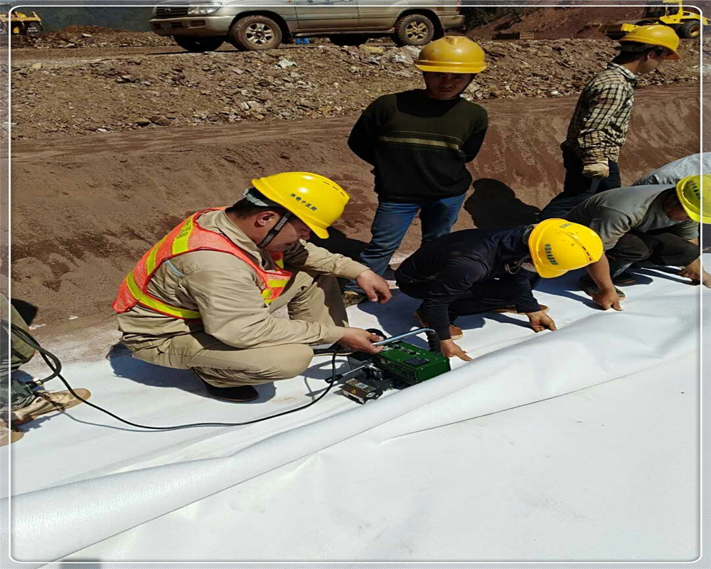 土工布作為土工膜的保護(hù)層,使保護(hù)防滲層不受損壞。為減少紫外線照射,增加抗老化性能,最好采用埋入法鋪設(shè)。
